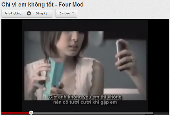 Trong MV của nhóm nhạc Fous Mod, cô bạn gái vô tư đưa điện thoại cho cô bạn xem hình ảnh