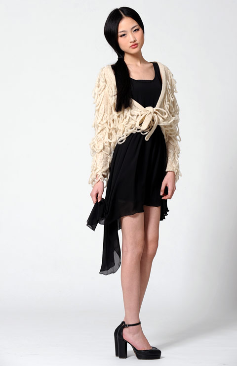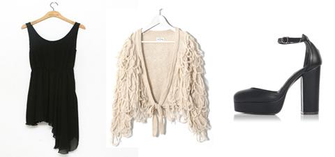 Chẳng quá tốn công mix đồ, nhưng bạn vẫn sẽ rất quyến rũ và thu hút khi diện bộ trang phục này đến một buổi dạ tiệc: váy voan mềm rủ duyên dáng và áo len khoác ngoài kiểu dáng lạ mắt. Do chiếc áo đã khá cầu kỳ rồi nên bạn hãy làm tóc thật đơn giản thôi nhé.