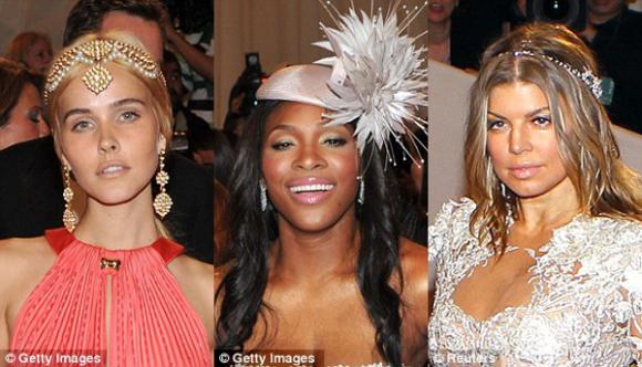 Tại MET Gala vừa qua, nữ diễn viên trẻ Isabel Lucas dùng đồ trang sức ngọc trai và vàng, là sản phẩm của nhà thiết kế Lorraine Schwartz. Trong khi đó nữ hoàng quần vợt Serena Williams xuất hiện với chiếc mũ thiết kế độc đáo. Nữ ca sỹ Fergie cũng biến tấu với chiếc bờm trắng phù hợp với bộ đồ cô đang mặc.
