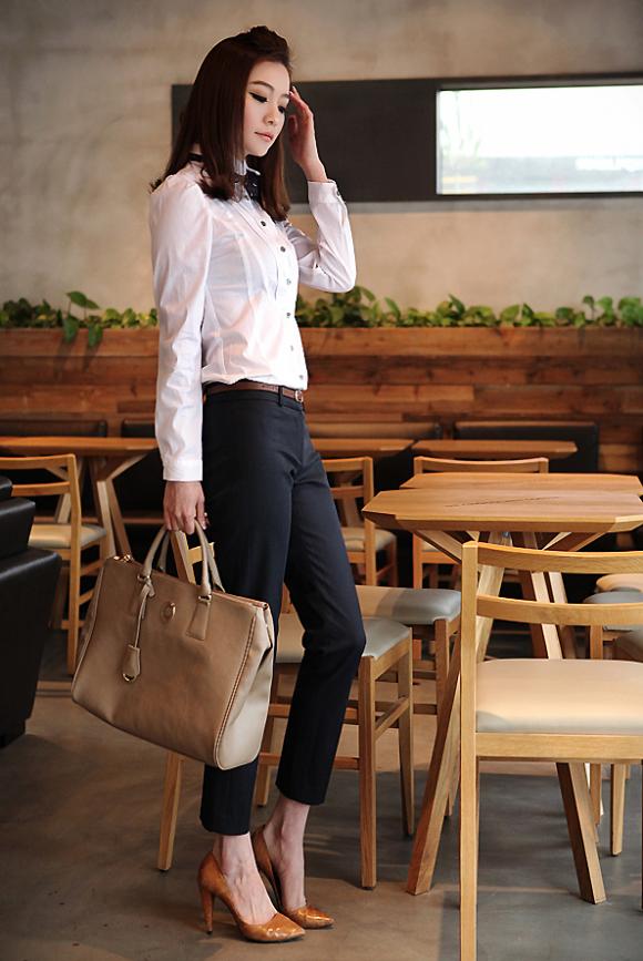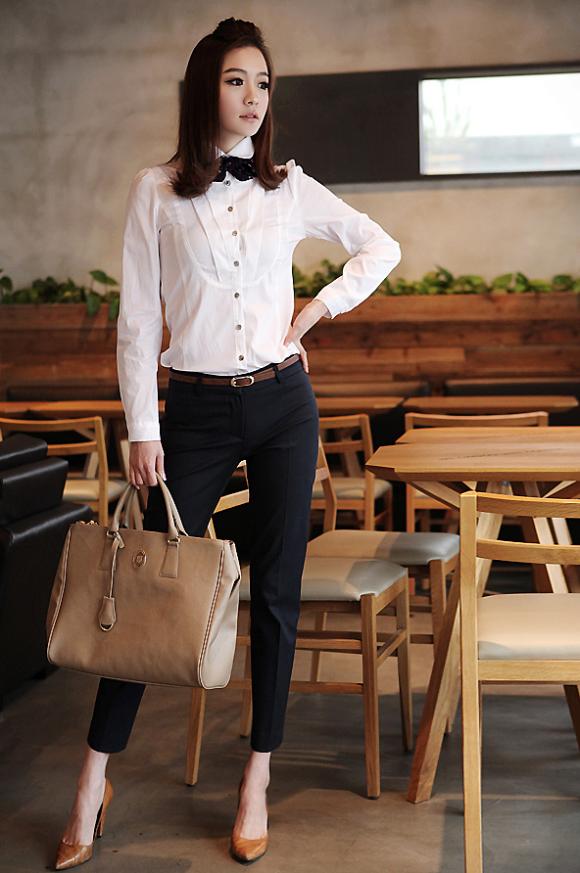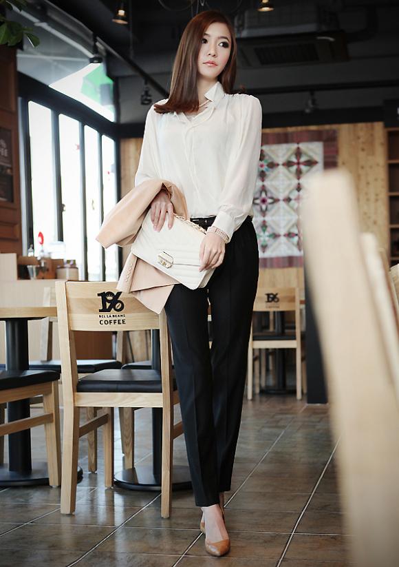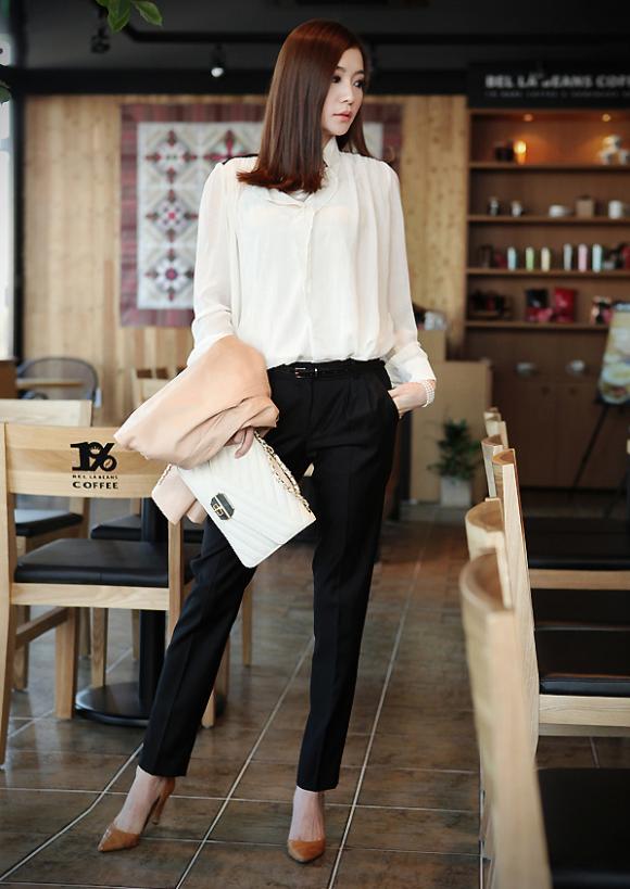 Sơ mi trắng và quần âu đen là lựa chọn hoàn hảo cho những cô nàng công sở,