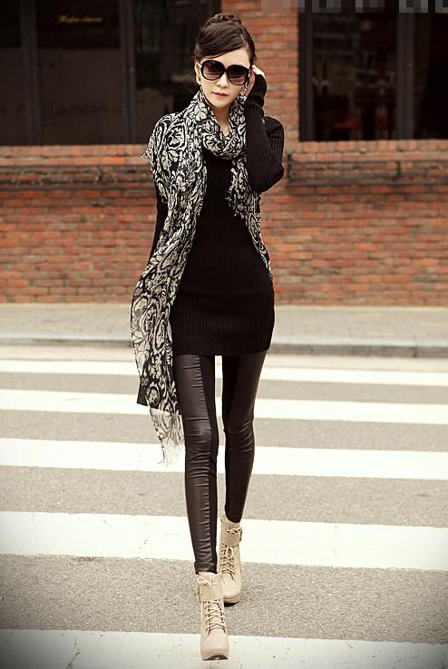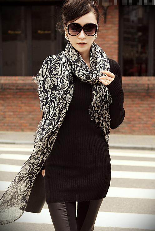 Chiếc khăn họa tiết trắng đen rất phù hợp cho những ngày hơi lạnh