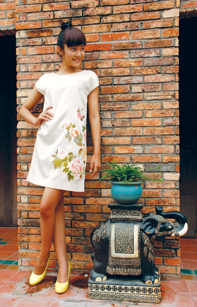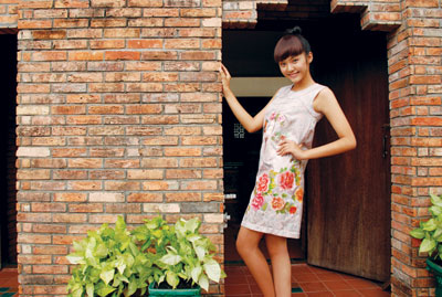 Chưa hết, sự óng ánh, hút sáng của gấm đem đến cho trang phục vẻ sống động. Gấm trong những thiết kế mới là những hoa văn nhỏ, dầy đặc, ẩn chìm cùng màu pastel (màu nhạt).