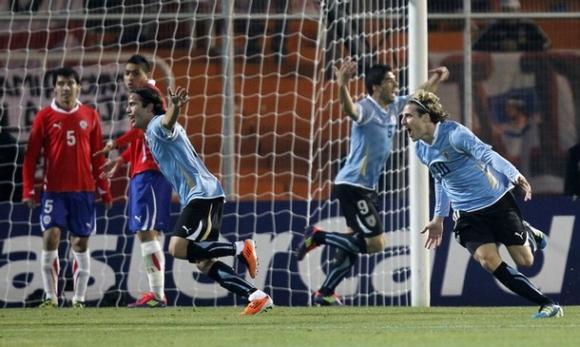 Uruguay: Fernando Muslera, Lugano, Victor Maximiliano Pereira, Coates, Martin Caceres, Perez, Arevalo, Pereira, Alvaro Gonzalez, Forlan, Luis Suarez