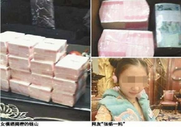 Từ những bức ảnh được lan truyền với tốc độ chóng mặt, có thể thấy nhân vật chính là một cô gái xinh đẹp, bên cạnh cô có rất nhiều cọc tiền mệnh giá 100 nhân dân tệ (khoảng 335 nghìn đồng) và 50 nhân dân tệ (khoảng 167 nghìn đồng). Người chia sẻ có nick name “Trương Dương Nhất Thuần”, vốn là bạn của nữ nhân vật chính trong các bức hình. Trương Dương Nhất Thuần cho hay mục đích đăng tải là để chúc mừng cô bạn thân của mình.