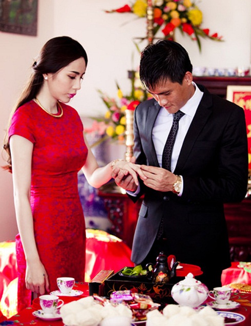 Lễ đính hôn của hai người đã được diễn ra tại nhà của Thủy Tiên ở Rạch Giá, Kiên Giang vào ngày 4/11/2011.