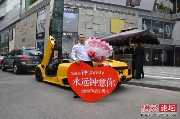 Mới đây, người đàn ông kể trên đã gây xôn xao với màn tỏ tình dành cho nữ minh tinh gốc Việt. Bên chiếc Lamborghini đắt tiền màu vàng chóe, đại gia đã ôm trái tim và một bó hoa lớn để bày tỏ tình cảm với Chung Lệ Đề.