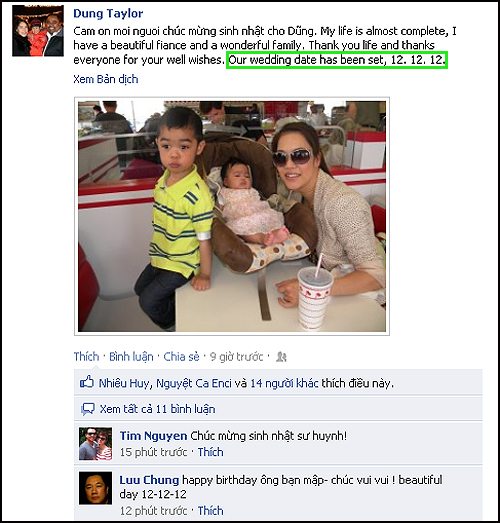 Dũng Taylor tiết lộ ngày cưới trên trang cá nhân đúng vào ngày sinh nhật của mình.
