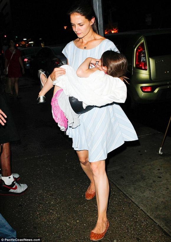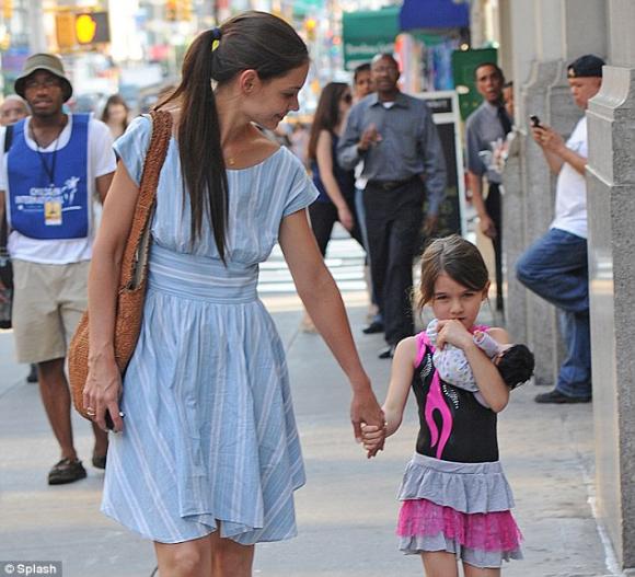 Suri trông có vẻ chững chạc và người lớn hơn hẳn trong lần đi mua sắm này với mẹ Katie. Trong khi mẹ Katie diện chiếc váy xanh nhạt họa tiết kẻ sọc rất trẻ trung và thanh lịch, thì Suri trông lại rất thiếu nữ với bộ váy tầng tông màu đen, ghi xám và hồng kết hợp với đôi giày ba lê màu bạc yêu thích của cô bé.