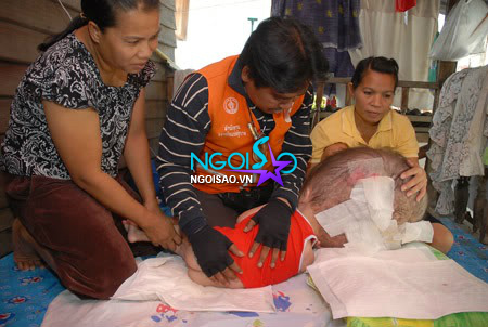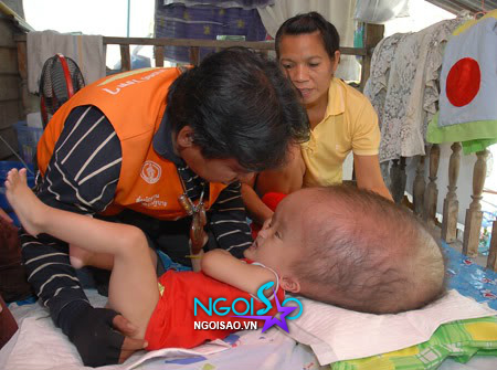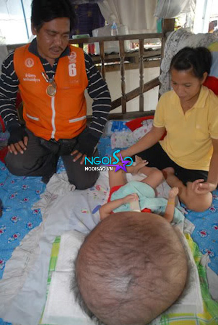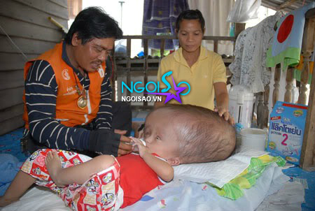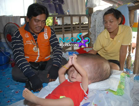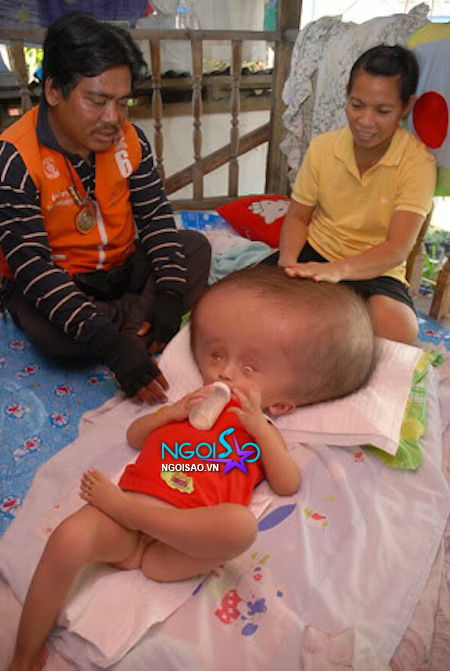 Cậu bé vui vẻ, hồn nhiên như bất cứ trẻ em cùng trang lứa, chỉ có chiếc đầu to hơn cả cơ thể khiến cậu và gia đình gặp nhiều khó khăn trong việc di chuyển cũng như các sinh hoạt cuộc sống.