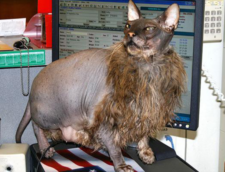 Loại mèo trụi lông với làn da nhăn nheo thật khiếp đảm.