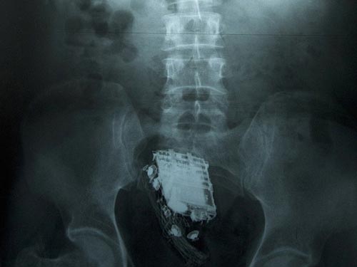 Gã tù nhân 58 tuổi bị ban quản lý nhà tù Welikada (Kotte, Sri Lanka) đưa đến bệnh viện cấp kỳ. Kết quả chụp X-quang phơi bày chiếc điện thoại đang ngự trong bụng ông ta và các bác sĩ phải giải phẫu lấy ra.