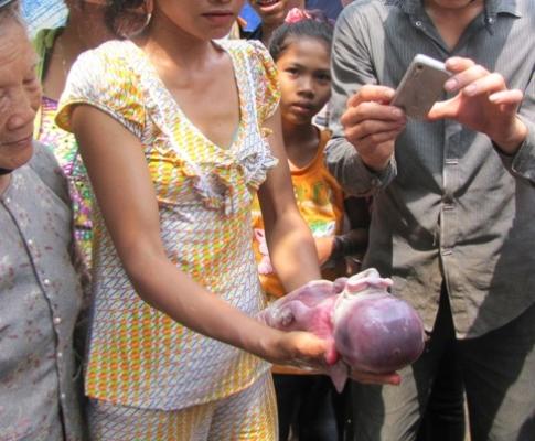 Rạng sáng 13/10, con heo nái nhà bà Khoai trở dạ và đẻ được 7 chú heo con. Sẽ không có gì đáng nói nếu chú heo con thứ 3 được sinh ra bình thường. Nhưng chú heo con này lại có hình thù quá kì dị khiến chủ nhà và những người hàng xóm phải giật mình sợ hãi.