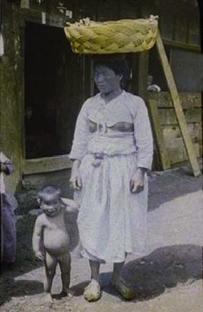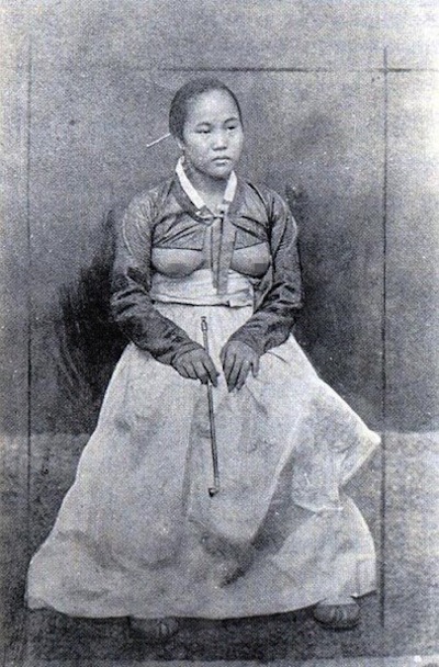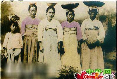 Vào những năm đầu thế kỷ 20, những người truyền giáo châu Âu đã dùng máy ảnh ghi lại cuộc sống đời thường của người Triều Tiên cổ xưa. Vào thời điểm đó, những người phụ nữ vẫn phổ biến một loại áo ngắn vào mùa hè, với đặc điểm hở nguyên vòng một được cho là tiêu chuẩn cái đẹp.