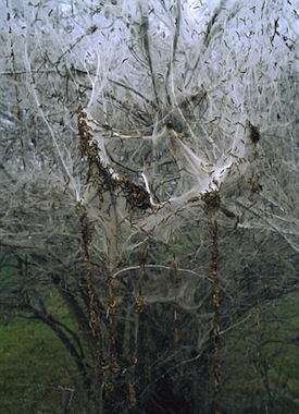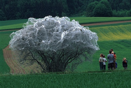 Việc ấu trùng kết màng để bảo vệ không còn xa lạ gì, nhưng việc hàng nghìn hàng vạn ấu trùng tập trung bao bọc một thân cây lại là hiện tượng kỳ lạ, bỗng chốc biến thành một kỳ quan của địa phương, thu hút sự quan tâm của rất nhiều người.