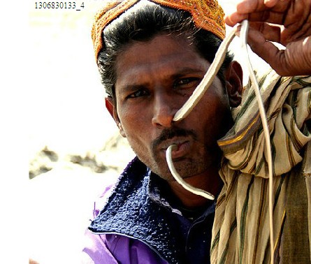 Người đàn ông trình diễn màn cho rắn chui qua miệng và mũi.