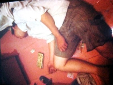 Đến 5h sáng13/4, Tài giật mình tỉnh giấc và lên lầu 1 nấp thì bị bà Lê thị Ứa (SN1960, mẹ vợ ông Hồng) phát hiện. Thấy bà Ứa tri hô, Tài cầm dao lao tới đâm nhiều nhát vào bà. Lúc này, Tài phát hiện vợ chồng ông Hồng - bà Giang (SN1980) ở trong phòng ngủ.