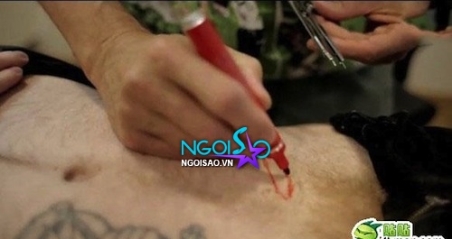 Rạch một vùng da bụng có kích thước 10x110mm, nhà thiết kế còn cho quay lại quá trình mổ rạch da và đăng lên youtube. Phần video ghê rợn khiến nhiều người đau nhói phần bụng khi xem những cảnh quay chân thực và trực tiếp, chúng được đặt chế độ đặc biệt mà chỉ đối tương phù hợp về độ tuổi mới có thể xem được.