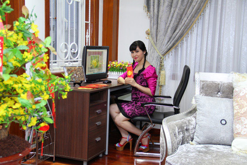 Gia đình Trang Nhung năm nay đã đón Tết đầy hạnh phúc trong căn nhà mới khang trang trên đường A 4, Quận Tân Bình. Ngôi nhà do chính ông xã cô – doanh nhân Ngô Nhật Phương thiết kế trang trí với ý tưởng vừa sang trọng, hiện đại nhưng vẫn giữ gìn được nét kiến trúc cổ xưa, quyền uy của vua chúa ngày xưa. Đặc biệt, về phong thủy, ngôi nhà phù hợp với tất cả các thành viên trong gia đình để mang đến sức khỏe cũng như sự phồn thịnh cho cả nhà.