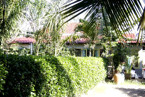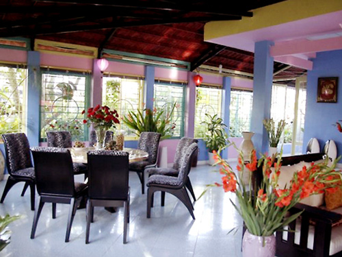 Cảnh vật tại đây tạo cảm giác thật dễ chịu, mát mẻ và hòa mình với đất trời. Ngay từ đầu ngõ, ngôi nhà hiện ra thấp thoáng nhỏ xinh được bao quanh bởi khu vườn xanh tươi. Bước vào trong nhà, ánh sáng thiên nhiên được tối đa hóa với thiết kế thoáng mát và rất nhiều cây xanh, hoa tươi đặt khắp nơi.