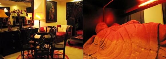 Trái với hình ảnh mạnh mẽ và quyết liệt của Ngô Thanh Vân trên màn ảnh, chốn yên bình của cô mang cảm giác hư vô và uy nghiêm với gam màu đen, đỏ trầm và vàng ấm. Bước vào ngôi nhà của Ngô Thanh Vân, người ta có cảm giác hư hư thực thực, phảng phất chút hư vô của cõi phật với rất nhiều chi tiết trang trí từ lịch treo tường, tượng, đồ vật,...