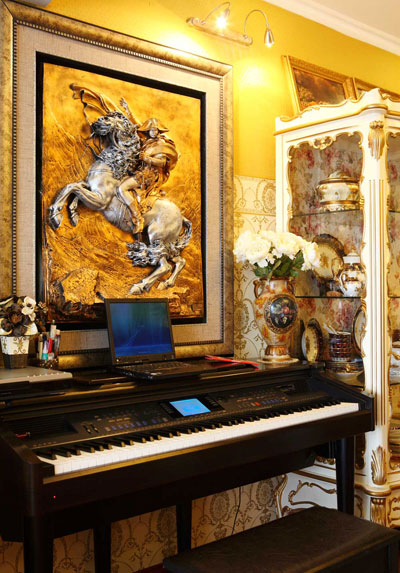 Ghế bọc da thú và chiếc đàn hiệu Steinway&Song mà theo chủ nhân, trên thế giới chỉ còn 2-3 chiếc