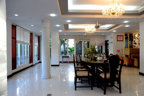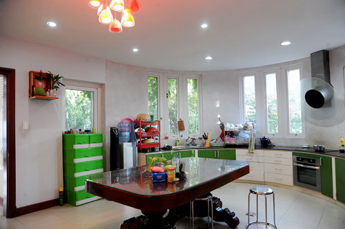 Sâu bên trong quán cà phê Ngọc Bi, thế giới riêng tư của Xuân Thảo như một dinh thự nhỏ, toàn bộ phủ một màu trắng tinh, xây theo hình lục giác. Bên ngoài căn nhà có hai con Ngọc kỳ lân, bên trong chủ nhân tận dụng tất cả các nguồn sáng để tạo nên vẻ thoáng đãng.