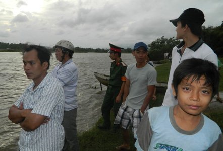Người dân tập trung trên bờ chờ tin lực lượng cứu hộ tìm xác